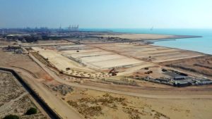 پیشروی در دریا نیز یکی دیگر از بخشهای مهم این پروژه بوده که بخشی از منطقه اول استحصالی آن، با سنگریزی در دریا تثبیت شده است.