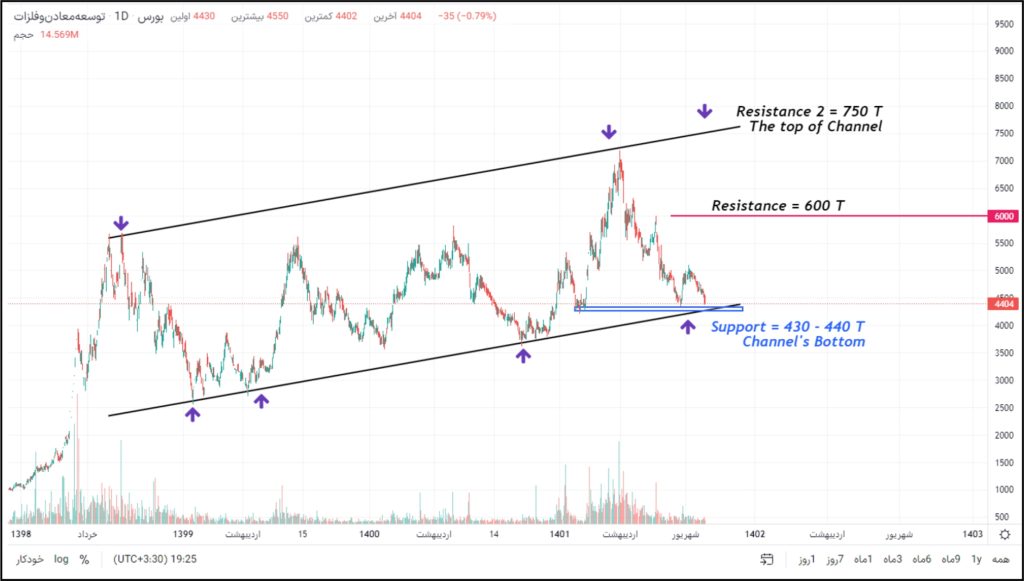 با توجه به موقعیت تکنیکال سهم ، فرصت خرید کم ریسکی فراهم شده است ، بدین‌صورت که تلاقی حمایت ۴۳۰ تومانی با کف کانال بلندمدت ، ریسک اصلاح یا ریزش بیشتر سهم را به حداقل رسانده است. علاوه بر آن ، حرکات اخیر سهم مشکوک به الگوی کف دوقلو نیز است. در صورت بازگشت و شروع فاز صعودی ، نخستین تارگت سهم، ۵۰۰ تومان و پس از آن منطقه مقاومتی ۶۰۰ تومان خواهد بود.