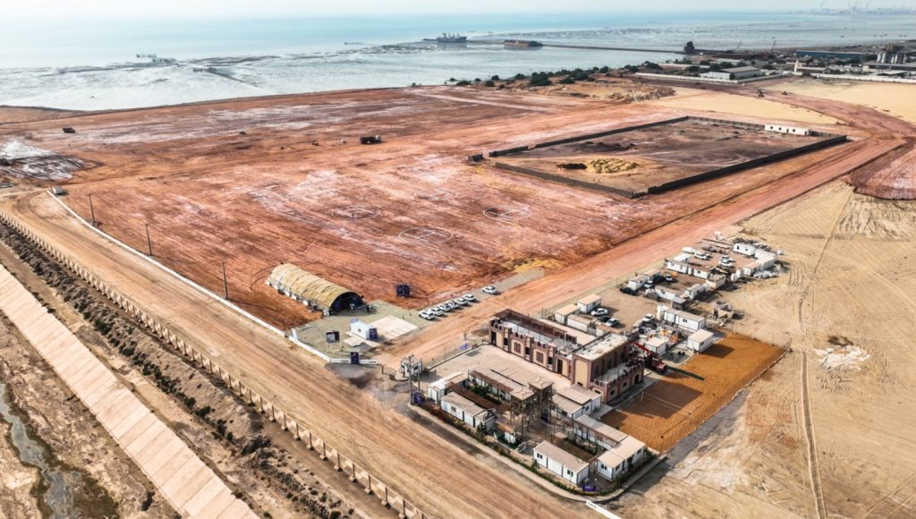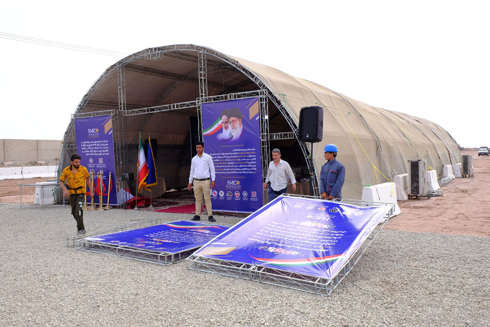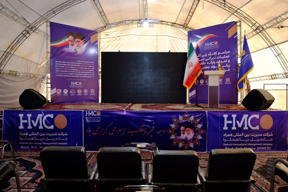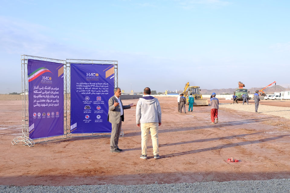 گزارش تصویری از مراحل آماده سازی جهت مراسم کلنگ زنی رئیس جمهور و هیئت همراه در پروژه بندری احداث اسکله و پایانه مکانیزه مواد فله معدنی ((هیمکو))